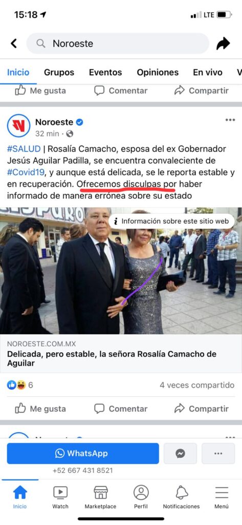 Sin darme cuenta dejé de vivir en Culiacán y acabo de calibrar hasta que distancia me alejé porque donde estoy luce igualito pero es tremendamente distinto. Estoy señalando que Manuel lo publicó en Noroeste, o lo que es lo mismo, dio su aval para que Noroeste publicara lo que yo no publiqué nunca. Ojo: el portal de SINALOATV.MX no lo publicó ni tampoco en su extensión de Facebook, así como tampoco en su red de conjurados, ni en sus listas de difusión de Whatsapp, que son ahorita la joya de la corona de su cobertura. Yo lo envié al breve conjunto que, pudiese decirse, es mi círculo personal de WhatsApp, es decir no lo puse en mi página personal de Facebook tampoco. Para efectos prácticos eso y nada hacen dos nadas aquí donde vivo. Desde hace dos años, todo lo que él ha visto de mí le ha llegado a su dispositivo desde el mismo número, tal y como ocurrió en el caso que nos ocupa ¿Por qué iba a pasar por su cabeza que esta vez era distinto? En mi caso, yo no le pregunté porque di por hecho lo publicaría… en la edición impresa. Polvo de aquellos lodos, yo no hago a Noroeste como portal digital, yo me sigo chupando la impresa en el desayuno, concretamente en la parte del cierre, donde sumado al café con pan, se establecen como la trinidad de un desayuno clásico sinaloense. Voy a ser muy específico porque no es un dato menor: Frente al universo de internet, Manuel y yo estamos por encima del promedio en cuanto a alfabetismo digital, aun así no pudimos tomar y hacer congeniar el cúmulo de factores en juego; yo sostengo que el choque provino de la pulsión por “la de ocho”, que acá no existe porque los acontecimientos y su registro son simultáneos. Yo no publico un contenido que no generé yo, en todo caso lo comparto nada más. Manuel hizo lo debido y yo también, según el código de cada uno y al publicarlo nos dimos cuenta de que lo primero es el error y el resto consecuencias: al publicarlo el portal del periódico, se salió del ámbito estrictamente digital y generó una tormenta en un vaso de agua, porque resulta que… antes de que ocurriera todo esto que les he contado, el mismo mensaje que me mandaron a mí lo habían extraído de Facebook, o sea que ya estaba circulando y no nos dimos cuenta porque estábamos haciendo control de daños en WhattsApp, como si se tratara de una exclusiva de un periódico. Es más que nada por eso, que aquí me tienen publicando la aclaración correspondiente, de la manera correspondiente, a gente que tiene la costumbre de leer, porque todo este enredo puede afectar a Noroeste y por seguir el ejemplo de una ejemplar mujer, que en un momento similar exclamó: ¡Porque la nena tiene conciencia gremial! Estoy hablando de Mafalda. No quiero por ningún motivo causarle un daño a un periódico, a una revista, a un portal… contribuir con parque para los tiros de gracia nunca me ha resultado una experiencia placentera, mucho menos cuando los fusilados están en la misma actividad que yo. Que Manuel Clouthier te tenga considerado como una fuente confiable, al punto de publicarte sin contrastar, no lo pone en mal a él, me advierte a mí sobre el nivel de la responsabilidad social y yo no lo tenía claro; Y es la segunda vez que lo hace. Ha sido otro hallazgo que me movió el tapete: Yo siempre tuve la idea de que el mucho o poco impacto que pudiese tener entre el público, era por mi atractivo físico, como es reconocido por todes, pero que allá afuera mis dichos le compitan a mi irresistible belleza… es como para pensar en subir la tarifa.